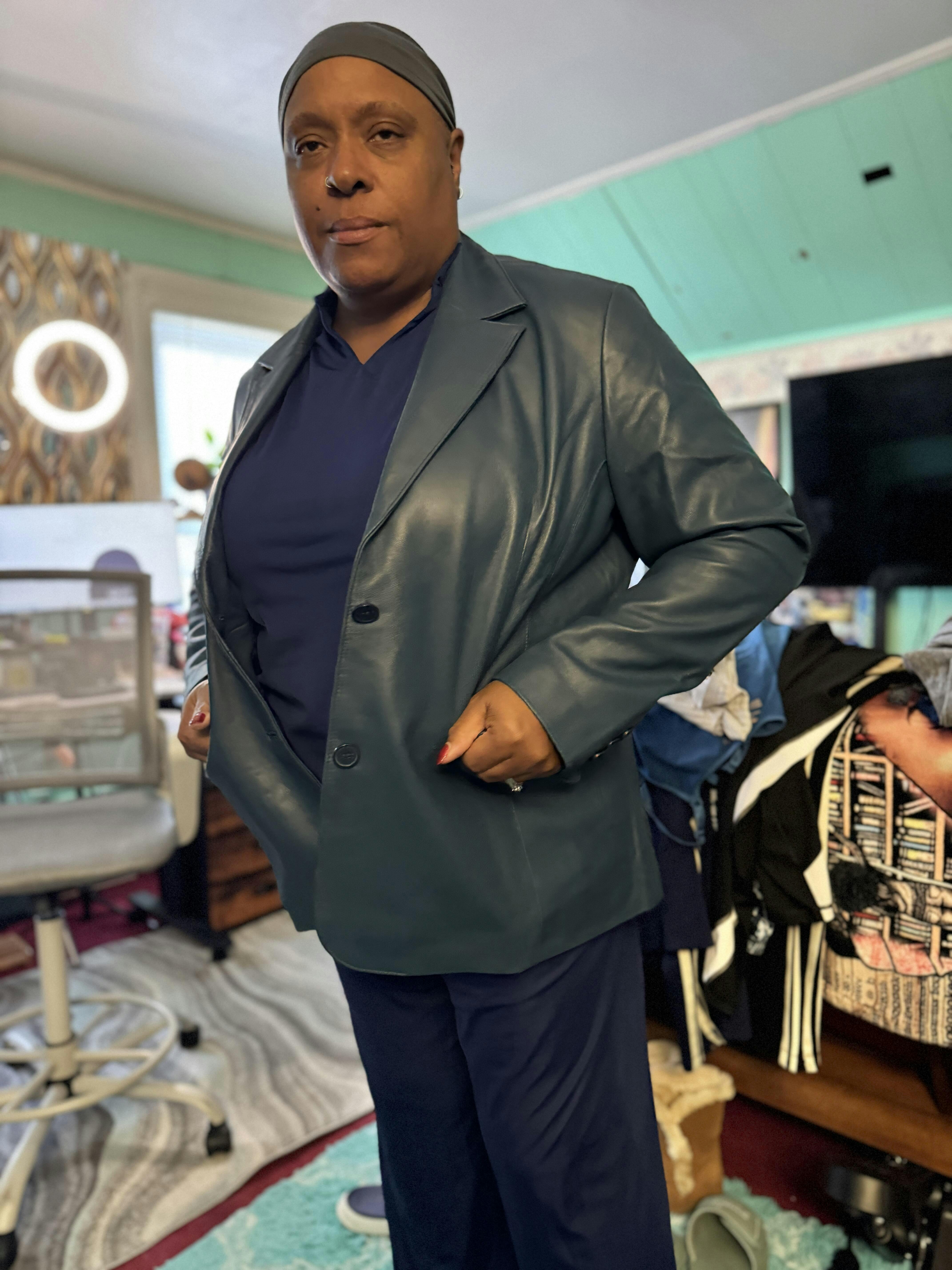 Women's Jild Classic Lambskin Blue Leather Blazer Jackets